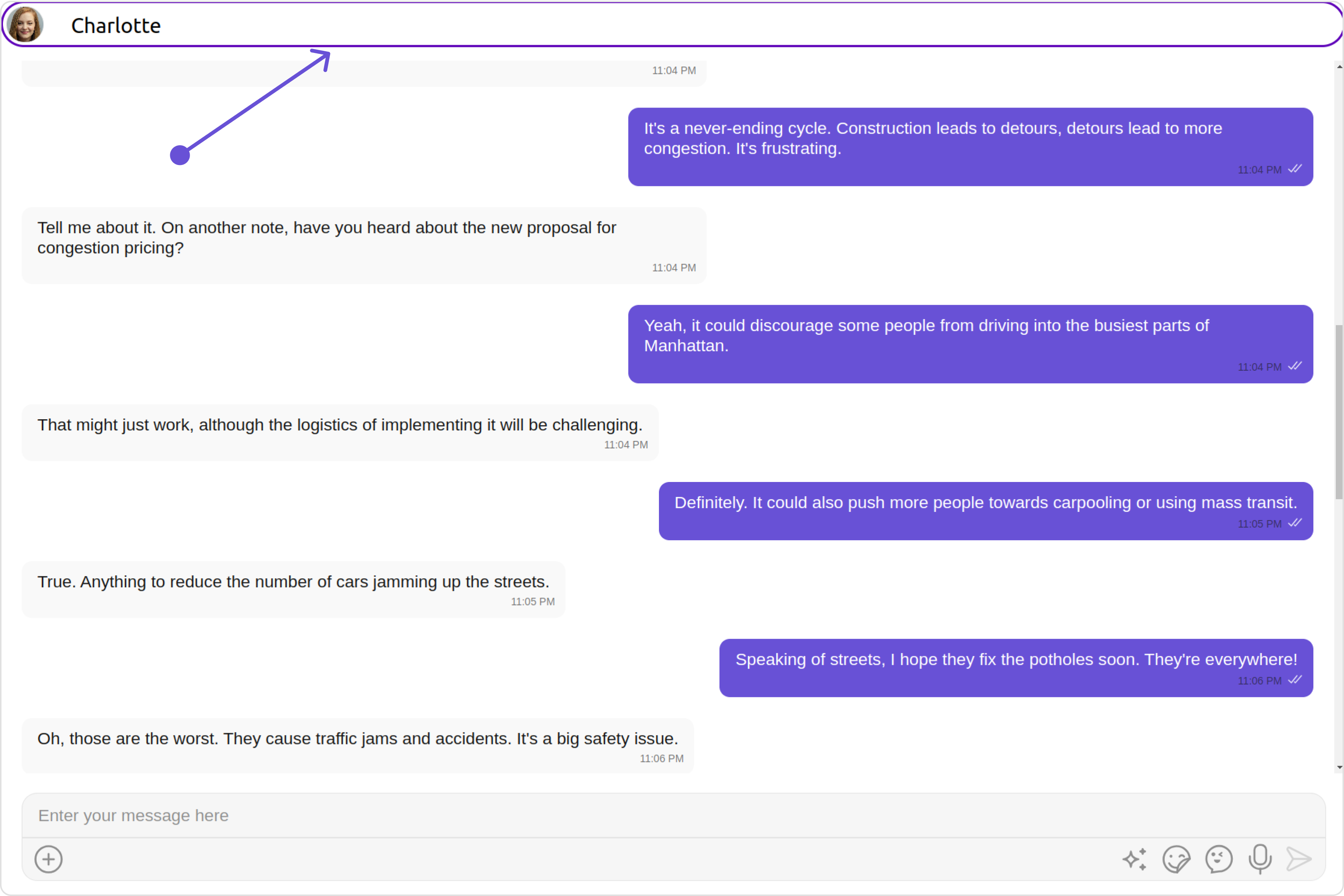 You can set your custom message header view using the messageHeaderView property. But keep in mind, by using this you will override the default message header functionality. Example Default
