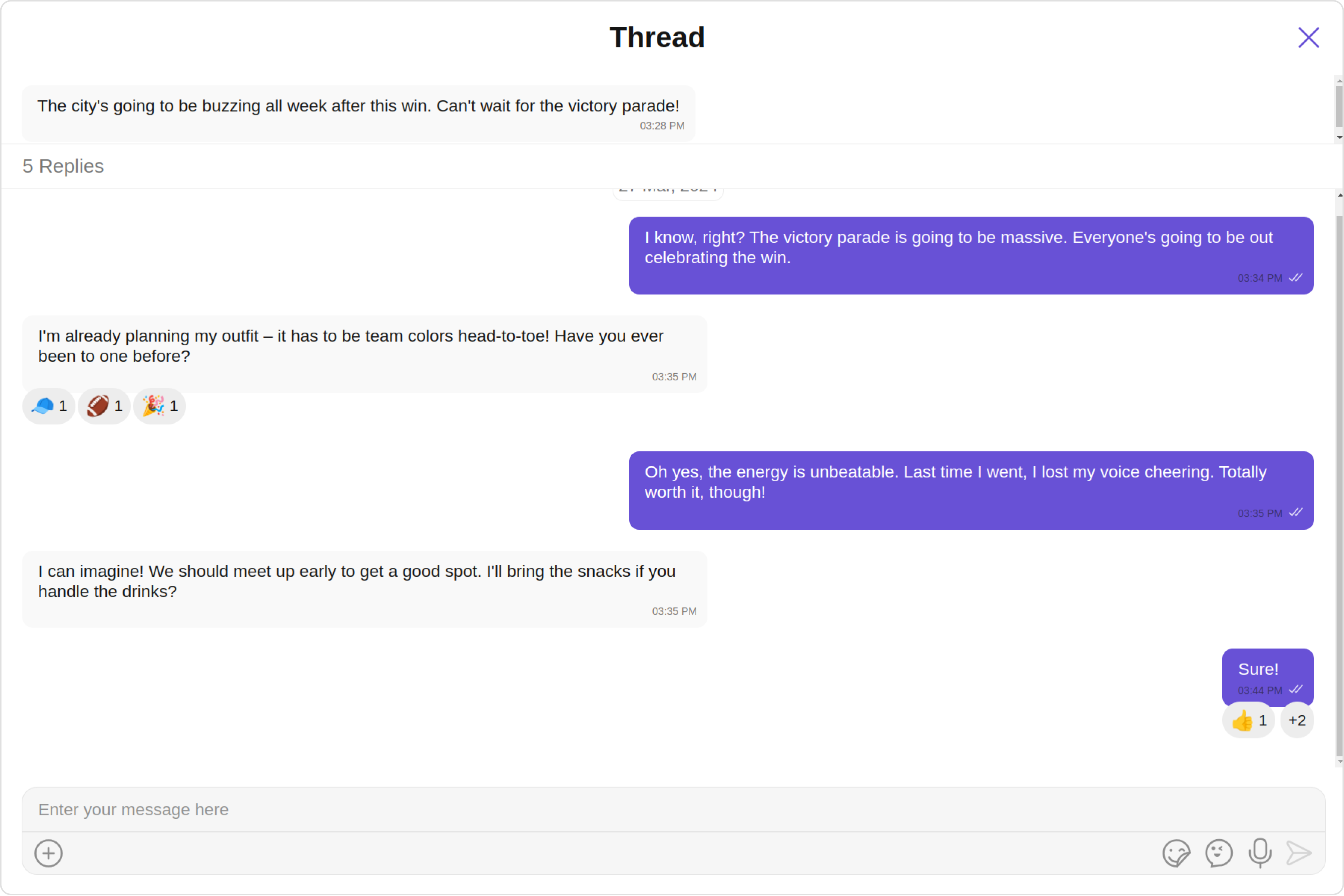 ThreadedMessagesCometChatThreadedMessages is a component that displays all replies made to a particular message in a conversation.